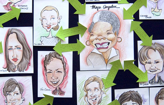 This particular year, FORTUNE and Deloitte US sponsored a creative exercise where 300 women visually matched their own stories with eight international icons of business, politics and pop culture in Dana Point, California. The newsmakers included Maya Angelou, J.K. Rowling, and Benazir Bhutto. Each guest shared a story of how they were connected, and the effect they had on their life and career paths.