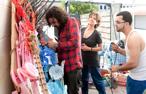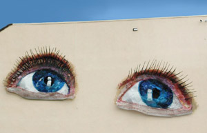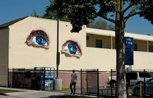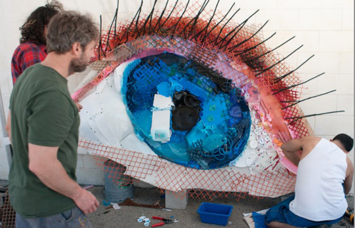 Tom has turned trash into art for years, and this time, he transformed Barbies, baby strollers, and Tonka trucks into a pair of dramatic toddler eyes gazing upward on the exterior wall of the school. WEHO Department of Cultural Affairs called the project, "Through the Eyes Of a Child." It could be seen for blocks, reminding passersby that there are creative ways to make a difference -- at any age.