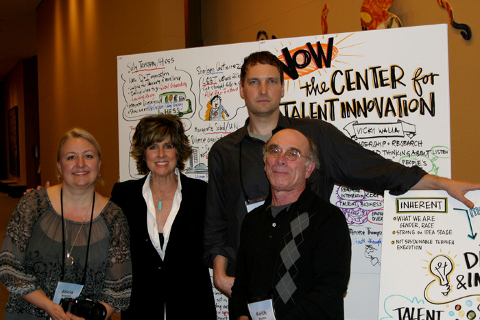 Professional scribes have an uncanny, instinctive gift: they can listen to a complex series of ideas and break them down to their essence. Amazingly, they are simutaneously interpreting those ideas into visual cues -- simple marks, symbols and sketches that represent the message as a whole. If you haven't seen them work, it will blow your mind. Here, our team of artists chronicles "The Hidden Brain Drain" Conference sponsored by The Center for Talent Innovation, at Lincoln Center, New York.